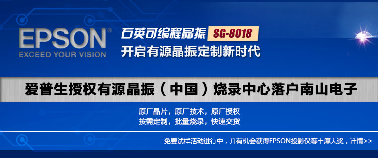 爱普生与球信网·(中国)电子共同为有新品开发和型号替换需求的用户,免费提供SG-8018系列石英可编程晶振样品。